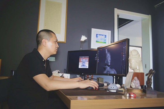 “很多雕塑家一輩子創(chuàng)作了大量雕塑作品,但投入精氣神的原作——泥稿,僅一件,無(wú)法完美可靠保存。我們可以將他們作品的泥塑小稿掃描,再在電腦中精修,能實(shí)現(xiàn)數(shù)據(jù)的永久保存和隨身攜帶。打印出來(lái)的小件作品可以翻模小批量生產(chǎn),送人或者留作紀(jì)念。這種形式非常受到藝術(shù)家的歡迎?!庇捎趯I(yè)相通,郗鑫也能非常暢通無(wú)阻地和他們進(jìn)行溝通。