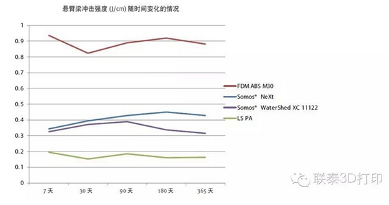 Somos?通過歷時一年的觀察實驗,對 Somos? NeXt 和 Somos? WaterShed XC 11122 與 LS PA 和 FDM ABS 材料的一般物理特性進行了對比。即使在一年以后,Somos? NeXt 和 Somos? WaterShed XC 11122 的性能仍與 FDM 和 LS 不相上下,只是總體拉伸性能略有變化。如今,以前只能考慮使用 3D 打印技術來打印生產件的工程師可以跳出傳統(tǒng)思維模式,考慮使用 Somos? NeXt 和 Somos? WaterShed XC 11122 材料以及光固化3D打印技術(其具有可呈現精細細部特征、精度高和光滑表面品質的特點),來實現他們的應用。